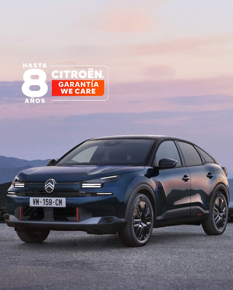 (5)Oferta financiera de 36 mensualidades y 30.000 km. C4 Hybrid 110 ë-DSC6 YOU con precio financiando de 20.300€ en Península y Baleares para clientes particulares que financien mínimo a 36 meses a través de Stellantis Financial Services España EFC, S.A. Incluidos impuestos, transporte, descuentos. Sujeto a aprobación financiera. Entrada: 4.661,66€. Mensualidad de 115€ que se compone de una cuota financiera mensual para una duración de 35 meses de 100,34€ y de un seguro de crédito de 14,66€ al mes. Última cuota: 16.131€. Capital financiado con comisión de apertura: 16.256,05€. Comisión de apertura (3,95%): 617,71€. Intereses: 3.386,85€. Coste total del crédito: 4.004,56€. Importe total adeudado: 19.642,90€. Precio total a plazos: 24.304,56€. TIN: 6,99%. TAE: 8,78%. Sistema de amortización francés. Al final del contrato podrá elegir entre entregar su vehículo, o abonar o refinanciar la última cuota. Oferta válida hasta el 31/03/2026. Precio al contado: 22.300€. El modelo visualizado puede no coincidir con el ofertado. Seguro de Crédito opcional (14,66€ al mes) incluido en las mensualidades y no en el capital financiado, suscrito con Stellantis Life Insurance Europe Limited, con el nº de registro C68966 y con domicilio social en MIB Housse, 53 Abate Rigord Street, Ta’ Xbiex, XBX1122 Malta, como compañía de seguros, y con la intermediación de Stellantis Financial Services España, EFC SA, agente de seguros vinculado inscrito en la Dirección General de Seguros y Fondos de Pensiones con la clave AJ-171 y con Seguro de Responsabilidad Civil contratado. Sujeta a normas de suscripción de la aseguradora. Consulte condiciones en www.citroen.es.